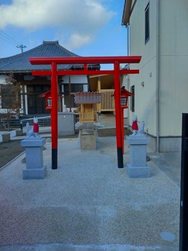 当地は南木という部落であったころから、主に農業を営んでいる方が多かったためでしょうか、境内には稲荷様をお招きしておりましたが、庭の中程にあって、かなり小規模の社殿でしたので、この際、新たにお招きさせて頂きました。